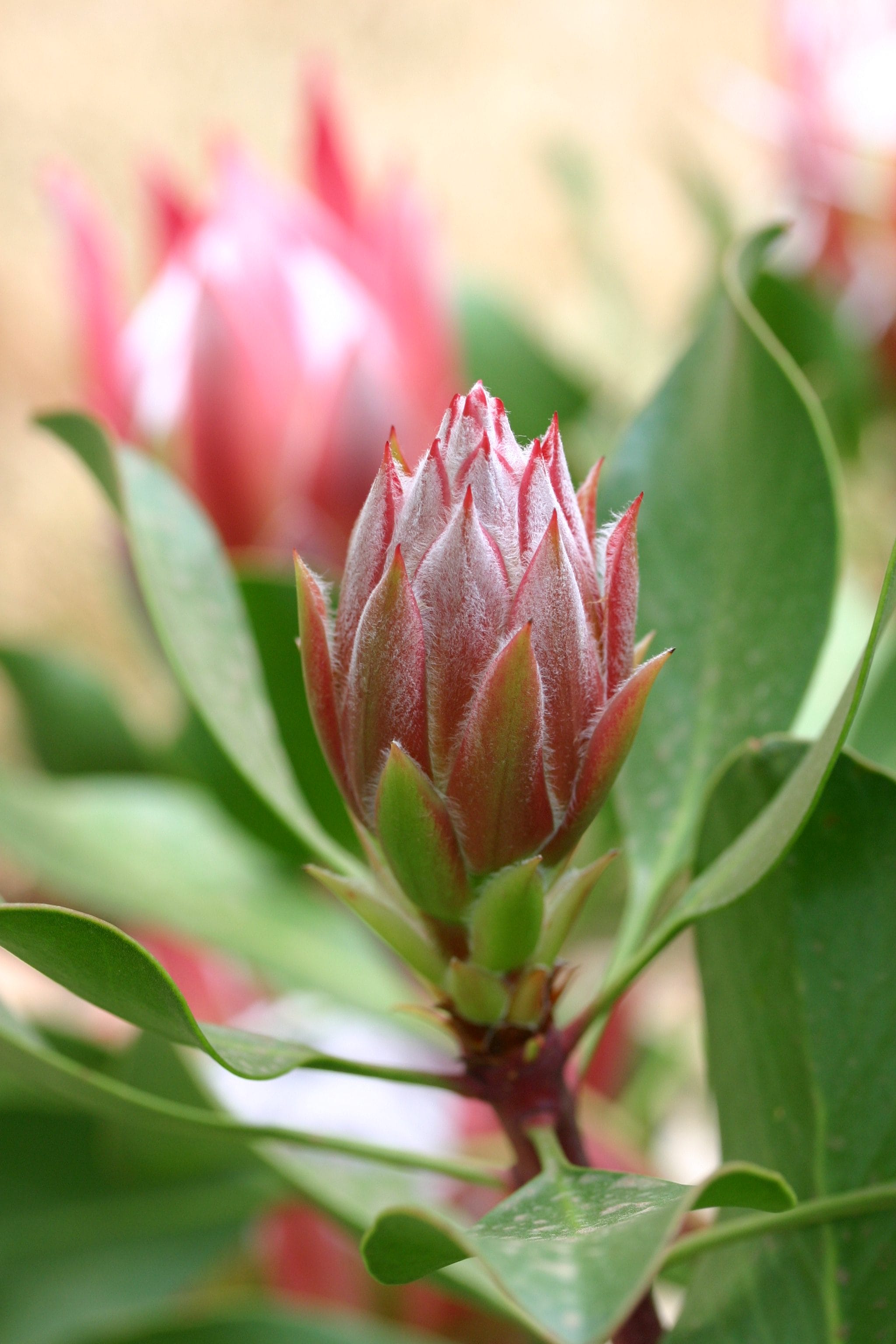 The Red Flower Bud Of Protea Cynaroides Little Prince Sugarbush Flower With Green Leaves In A Spring Season Stock Photo Image Of Lovely Blooming 145998470